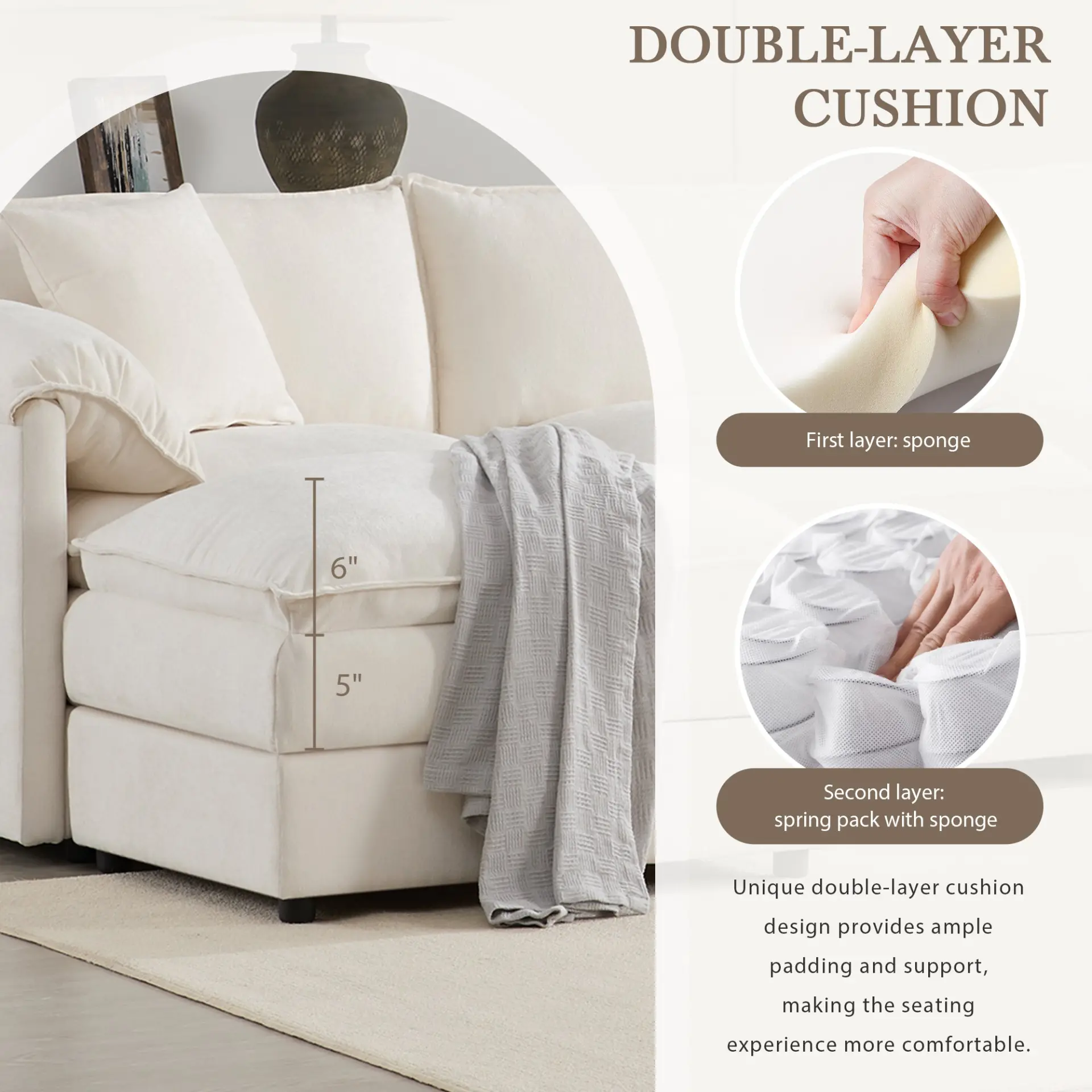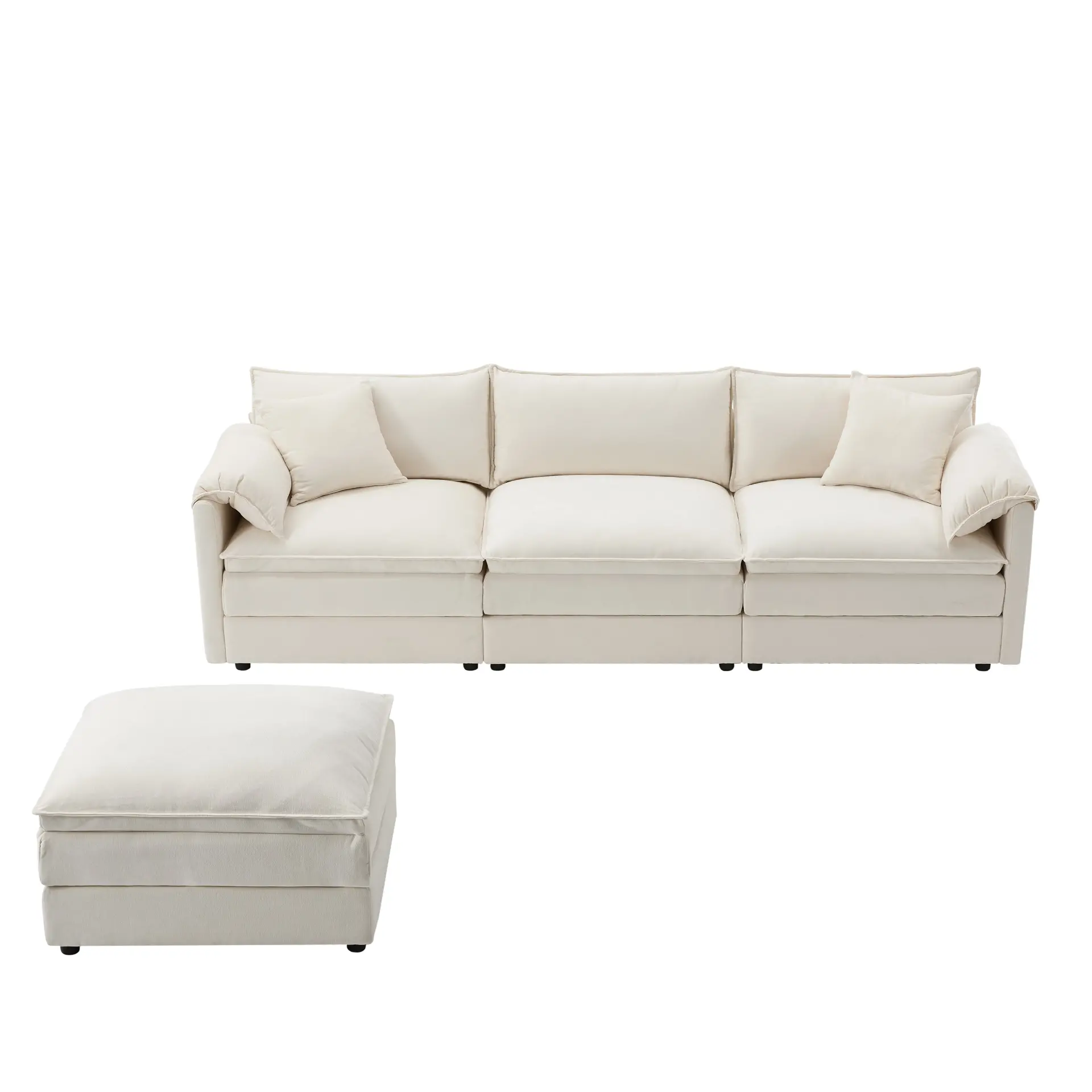 Indulge in luxury with our modular sofa, designed for ultimate comfort. Featuring thickened double cushions, soft armrest pillows, and spacious seating with extra-wide and deep dimensions. Complete your relaxation with a removable footrest, offering flexible and customizable comfort for your living space.