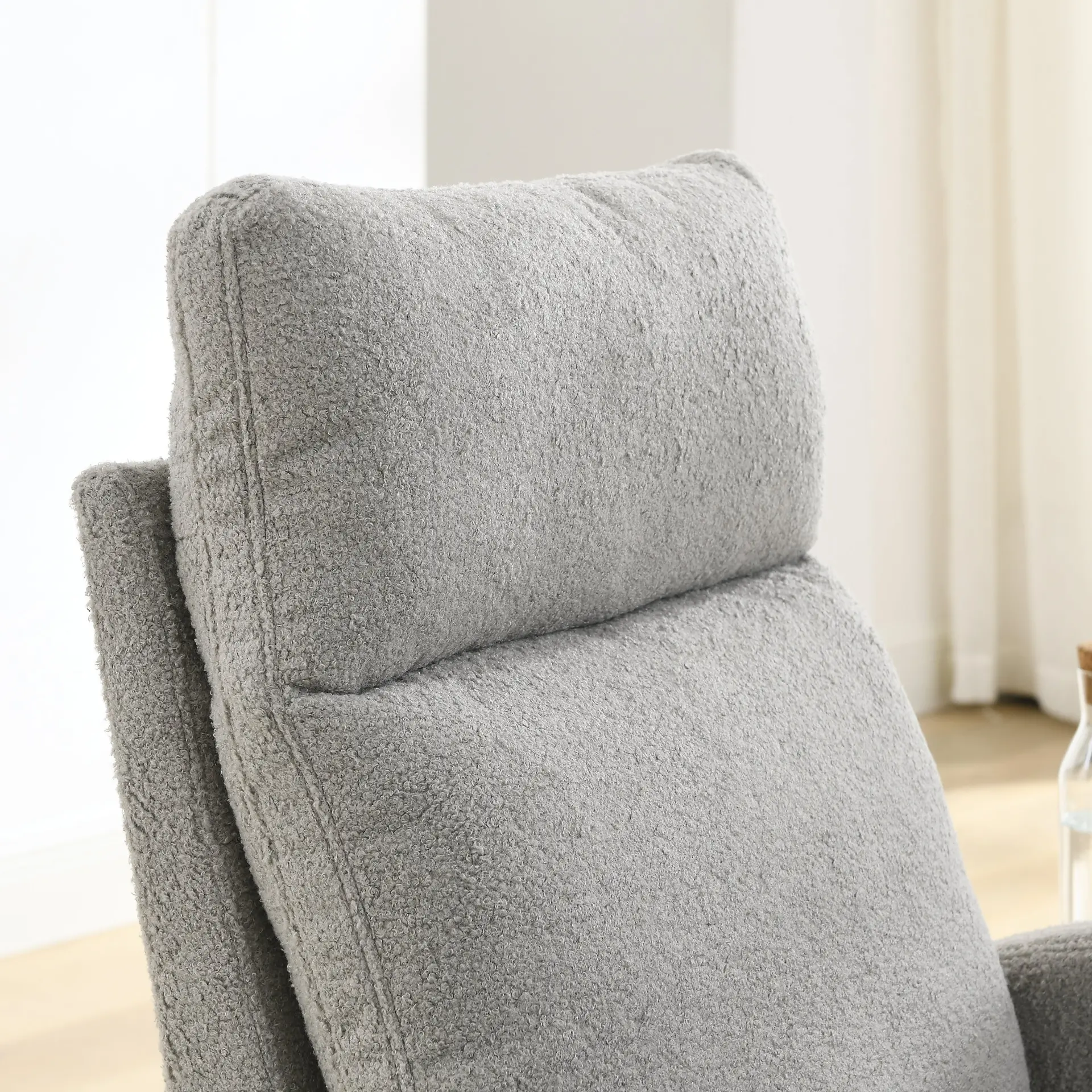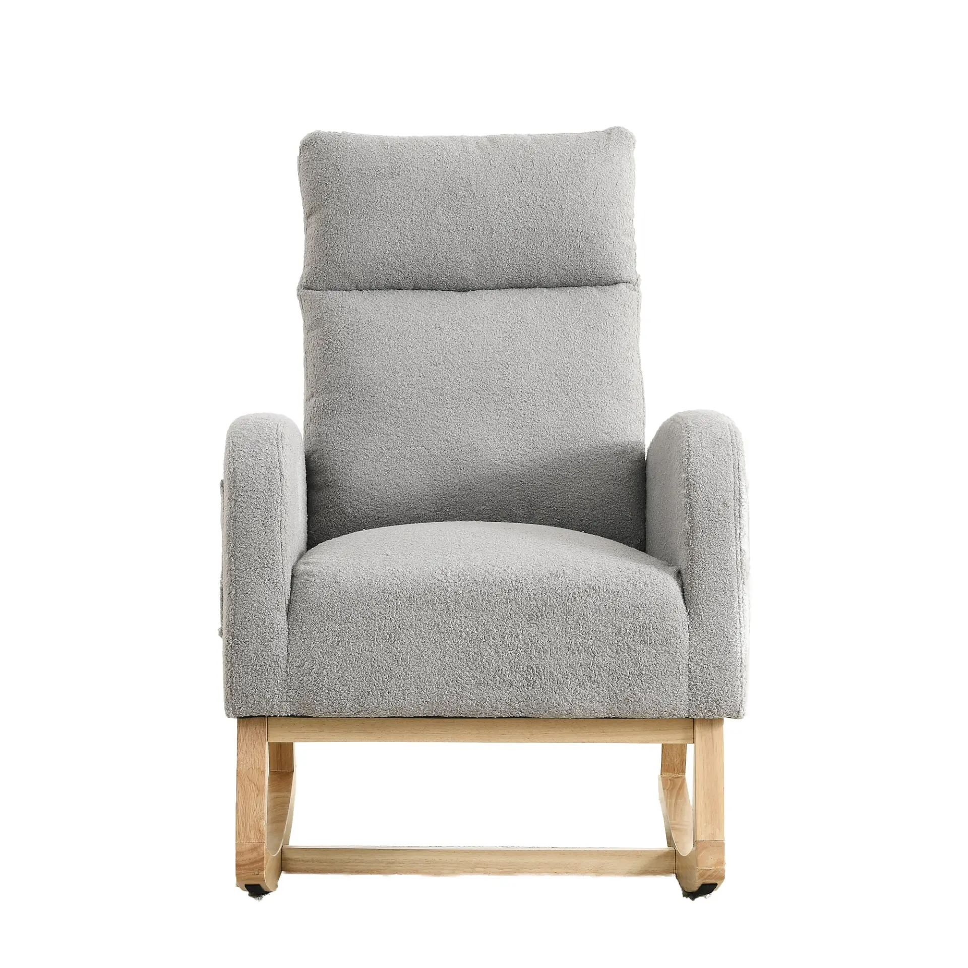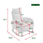 Carton quantity: 1 piece Product Name. Single-position rocking chair Overall size. Please refer to the picture Detailed size. Please refer to the picture Package size. Please refer to the description Package weight (lbs.). Please refer to the description Product weight (pounds). Please refer to the description Does the product include a pillow: No Load capacity: 250 lbs/seat Assembly required. Required (please refer to description) Fabric material: teddy fleece Frame material: pine + eucalyptus + plywood Seat structure: sponge + S-spring Padding: Cotton Sofa foot material: wood Country of origin. China Note: Manual measurement has been used, there may be some reasonable error. All pictures are taken based on actual samples, there may be slight color differences due to lighting or monitor.