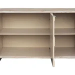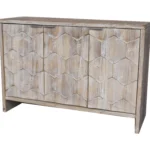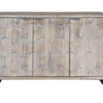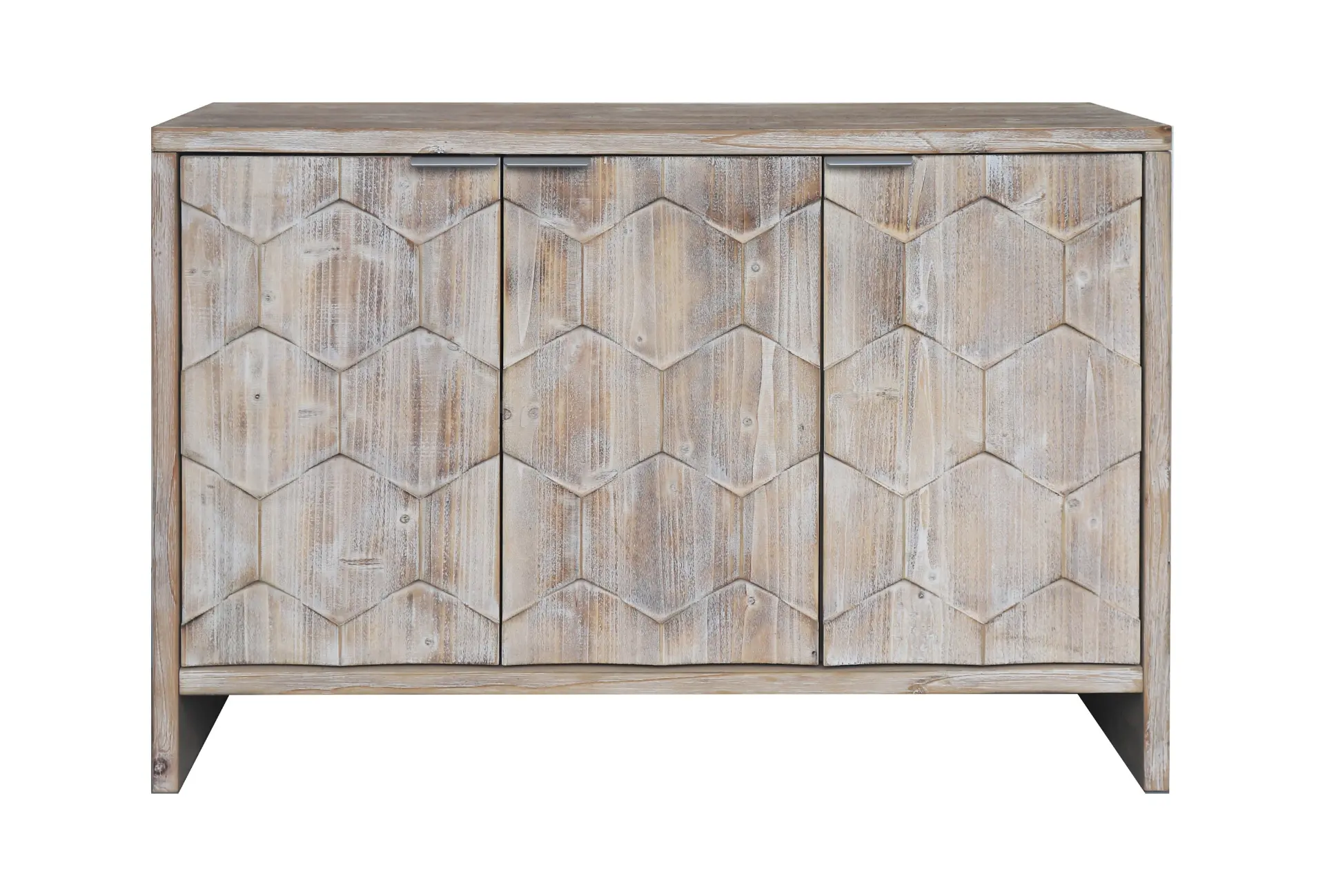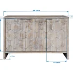 This cabinet is designed with minimalist style along with a stable structure to make a unique statement, which provides powerful practicality rather than a household adornment. With plenty of space to offer, utilize the casual three-door cabinet featuring two-tier storage to minimize clutter while keeping select essentials within easy reach, or display your favorite decor on the spacious upper counter. With decorative fluted doors add beauty and enhances the artistic sense of the entire home.