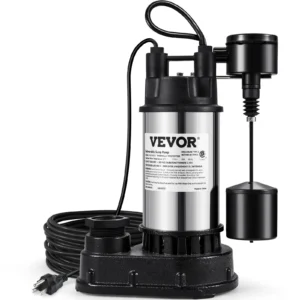 VEVOR 1.5 HP Submersible Cast Iron and Steel Sump Pump, 6000 GPH Submersible Water Pump with Integrated Vertical Float Switch, for Basement Water Basin and Flooding Area